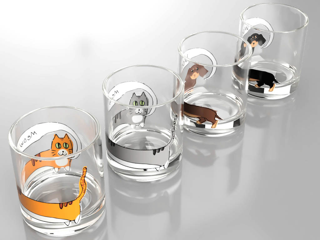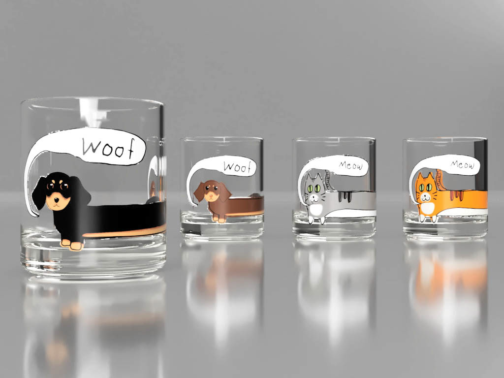 Four Pet Decor Set (Elongated Cats and Dogs)