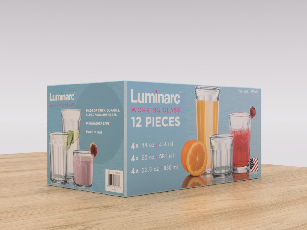 Designed a consumer packaging design for Luminarc branded drinkware using its brand guideline for Costco Wholesale in the US and Taiwan. Designed the layouts, photography, blue metallic backgrounds, and typography for the whole design.